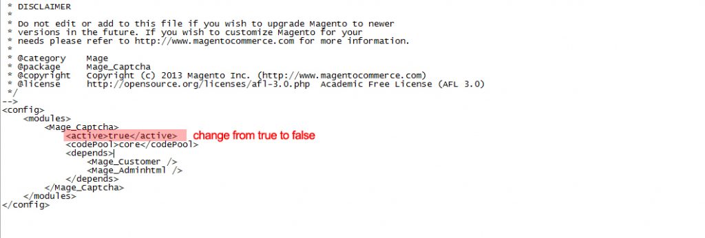 Step 1: Login to your hosting control panel and go to following path app/etc/modules/ open & edit Mage_Captcha.xml