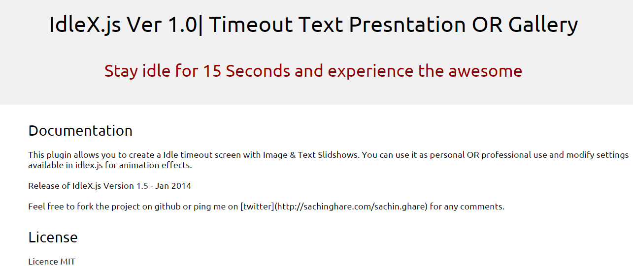The idea about idleX.js came up while checking the jquery events, i saw fire event (idle timeout) which helps to show time-out message with  alerts or with modal window. What if the idle thing comes with more approachable and can be use with most of the sites  which has nothing to do with database, i mean with static websites.